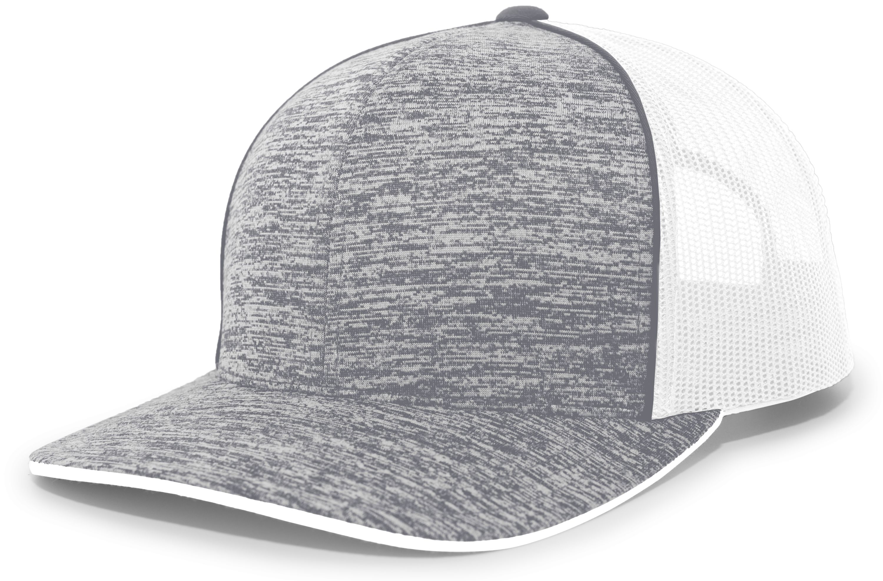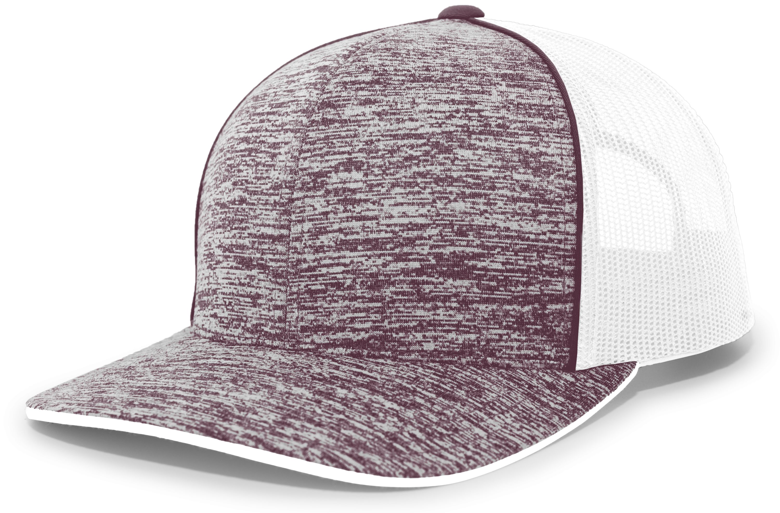 * Polyester blend * Trucker Mesh * Sublimated heather front panels * Wicks moisture * Mid-profile * Pro-model * White transitional undervisor * Pro-stitched finish * Snapback adjustable