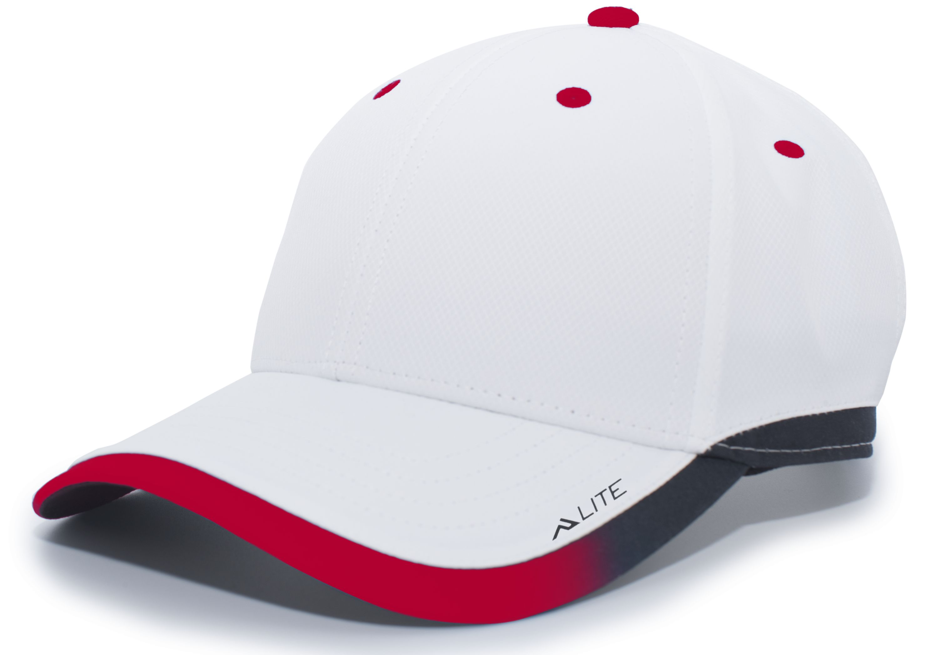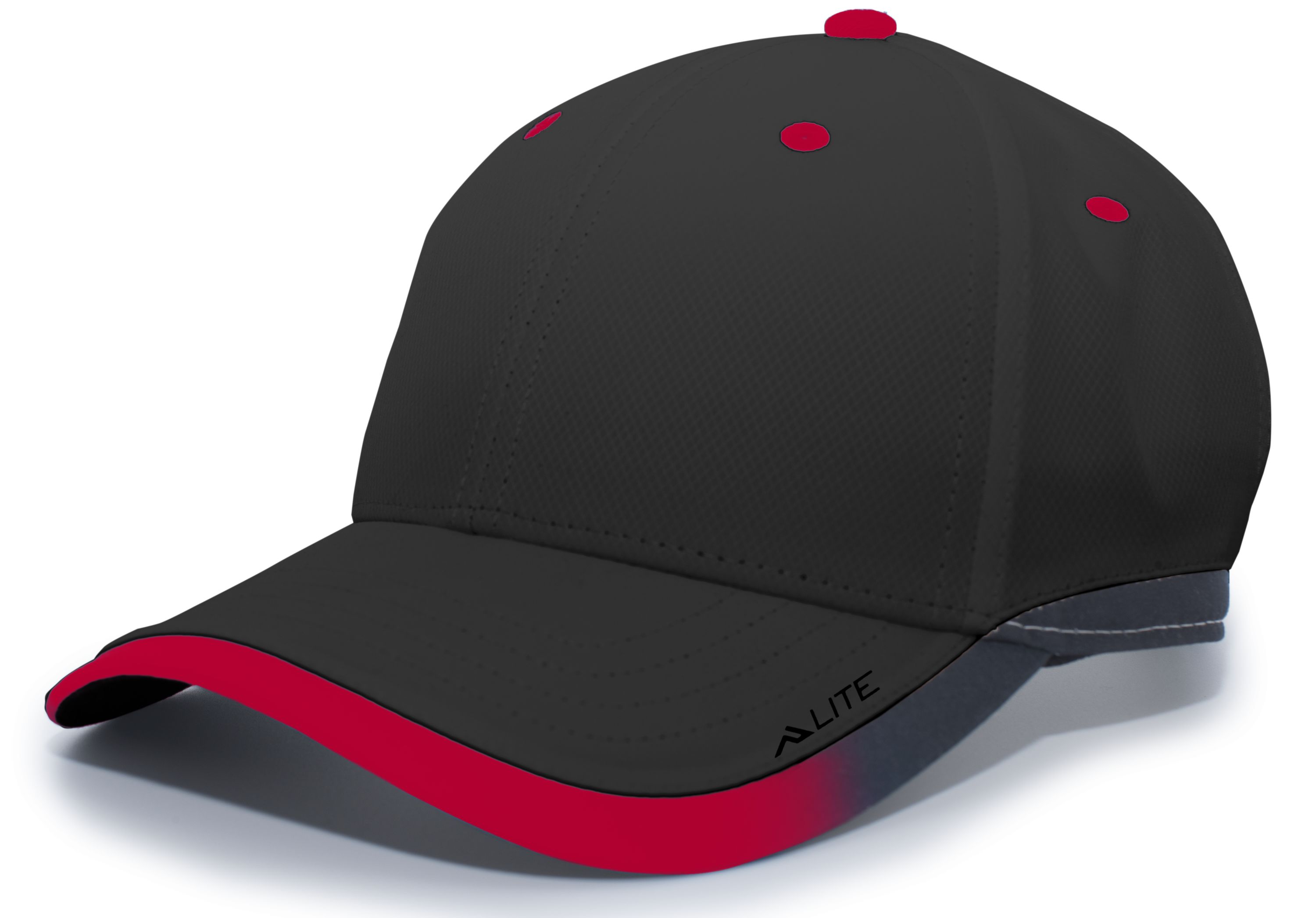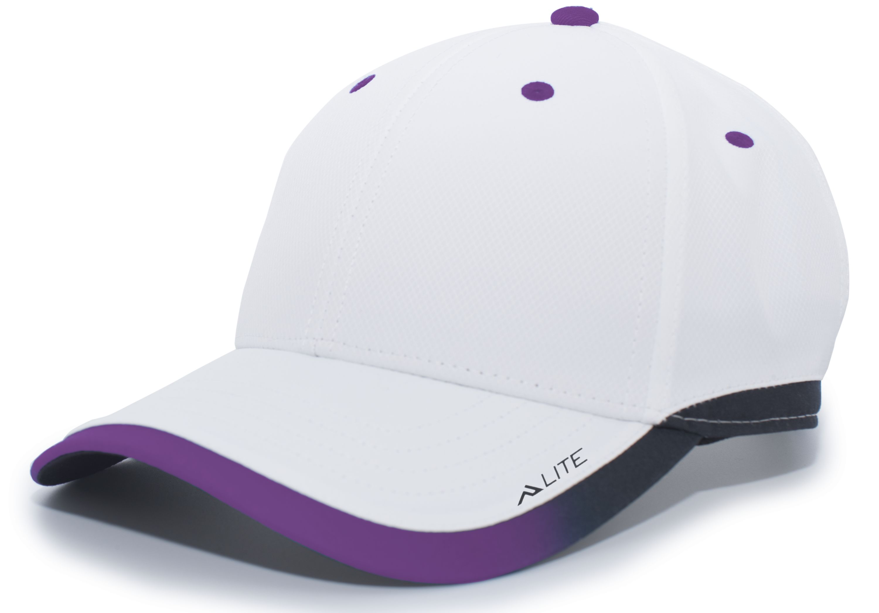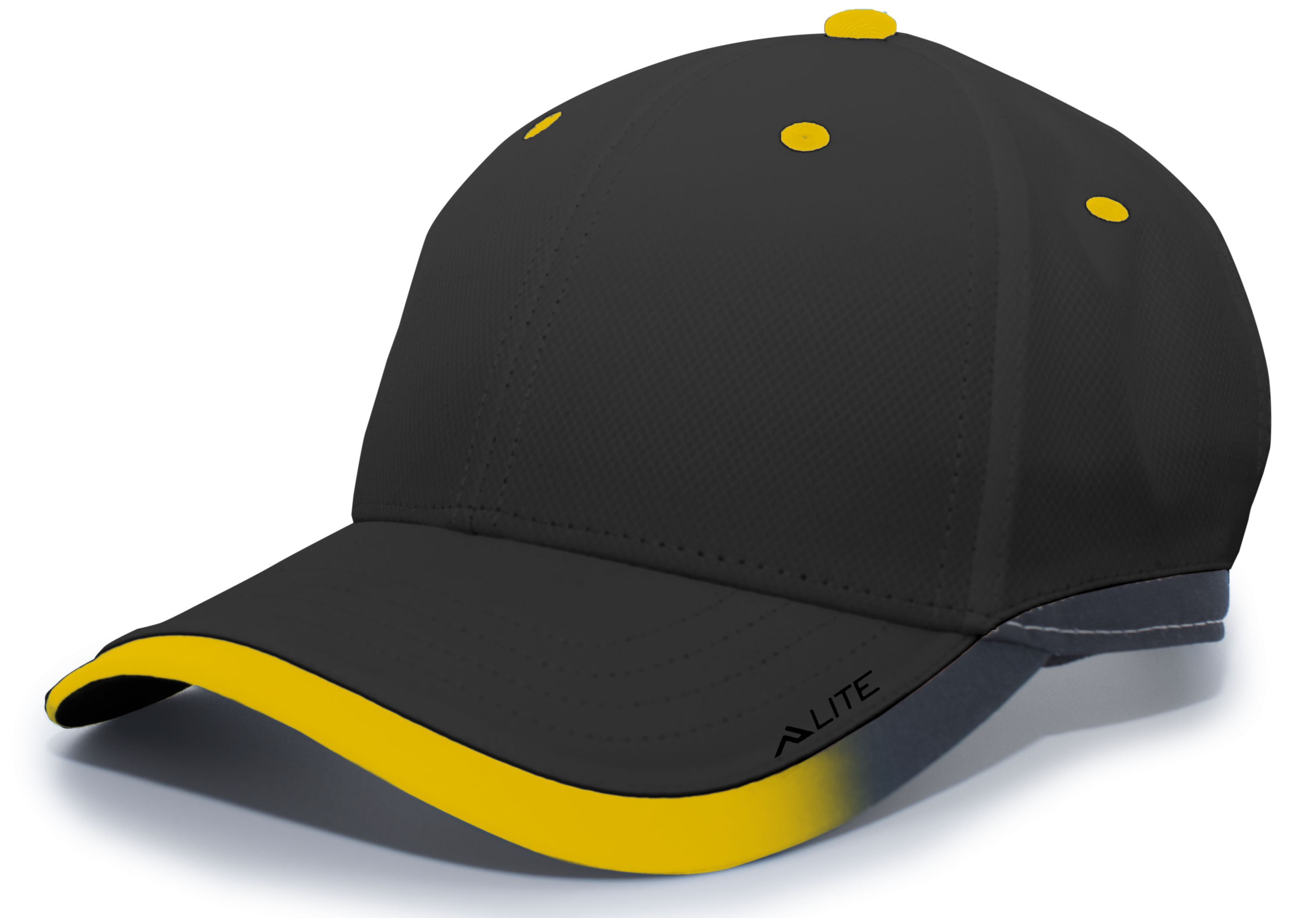 * 100% polyester * Breathable * Wicks moisture * Mid-profile, structured crown * Black undervisor * Contrast eyelets * Pro-stitched finish * Contrast gradient binding * Hook-and-loop adjustable
