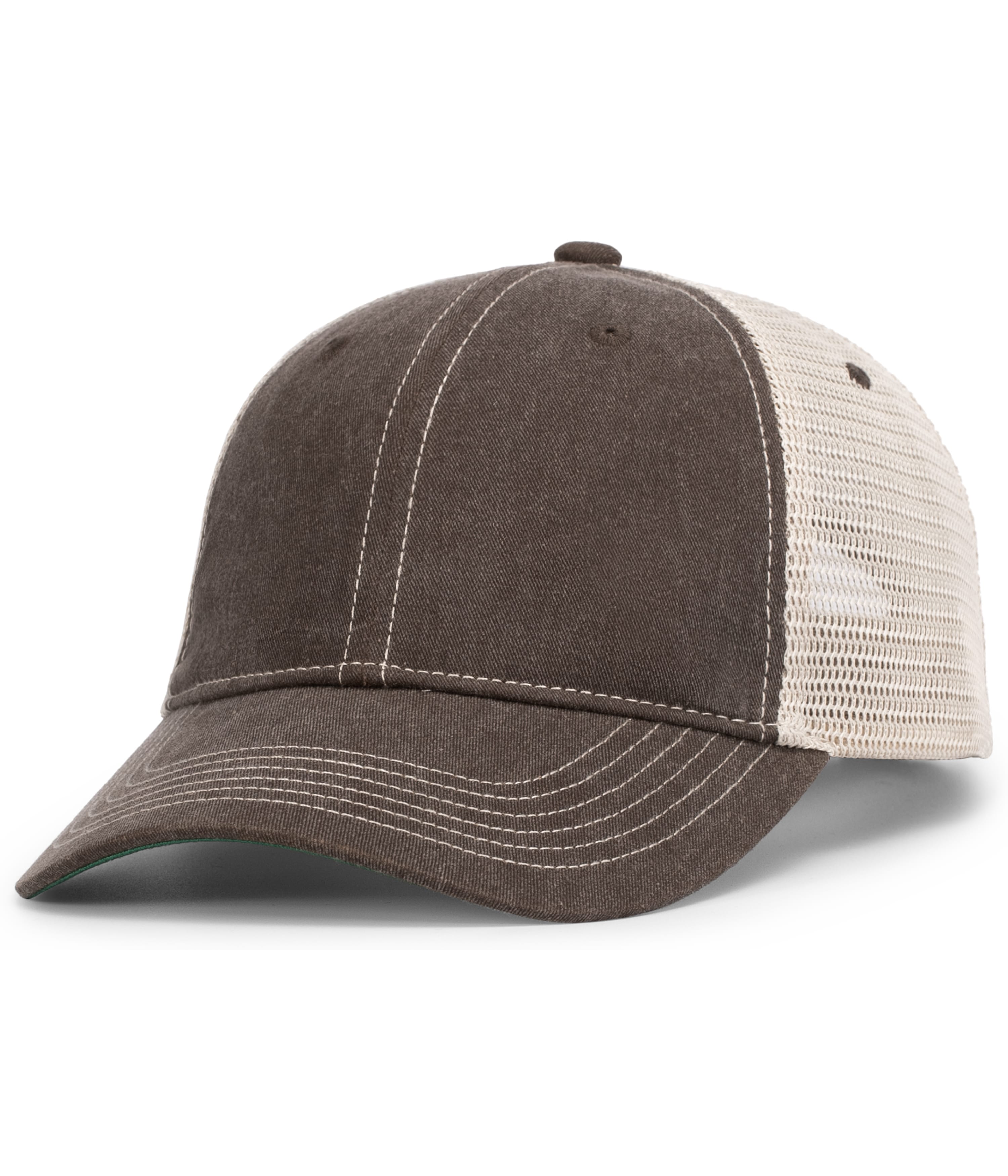* Cotton * Soft Trucker Mesh * Double washed twill front panels * Breathable * Low-profile, unstructured crown * Vintage green undervisor * Pro-stitched finish * Tan stitching * Snapback adjustable