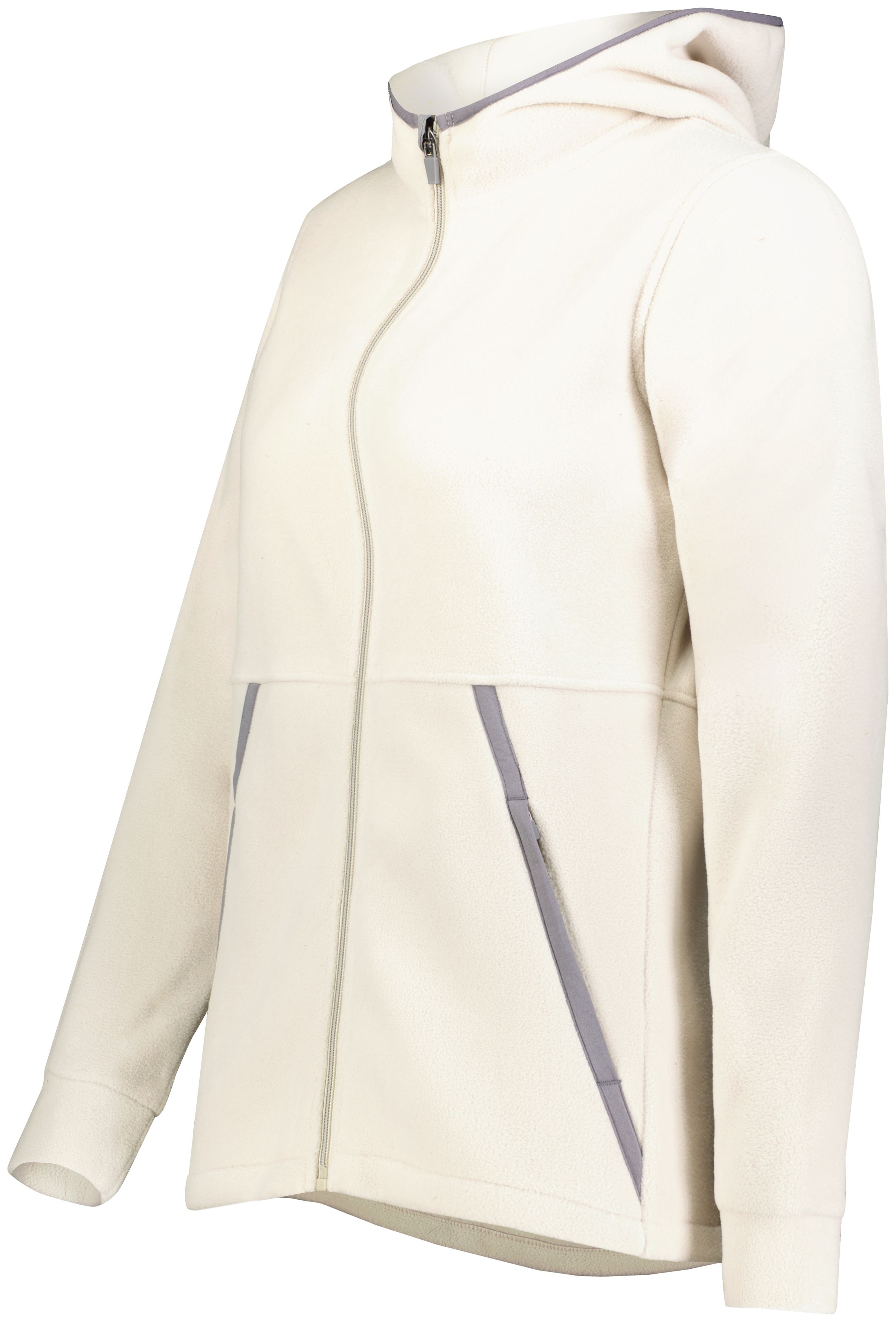 * Eco-Revive product featuring 8 ounce, 70% recycled polyester/30% polyester * Ladies' fit * Hanger loop label * Full front zipper with zipper garage to keep elements out * 3-piece hood with spandex binding * Set-in sleeves * Front zippered pockets with spandex binding detail * Dual inside pockets * Self-fabric cuffs * Open bottom