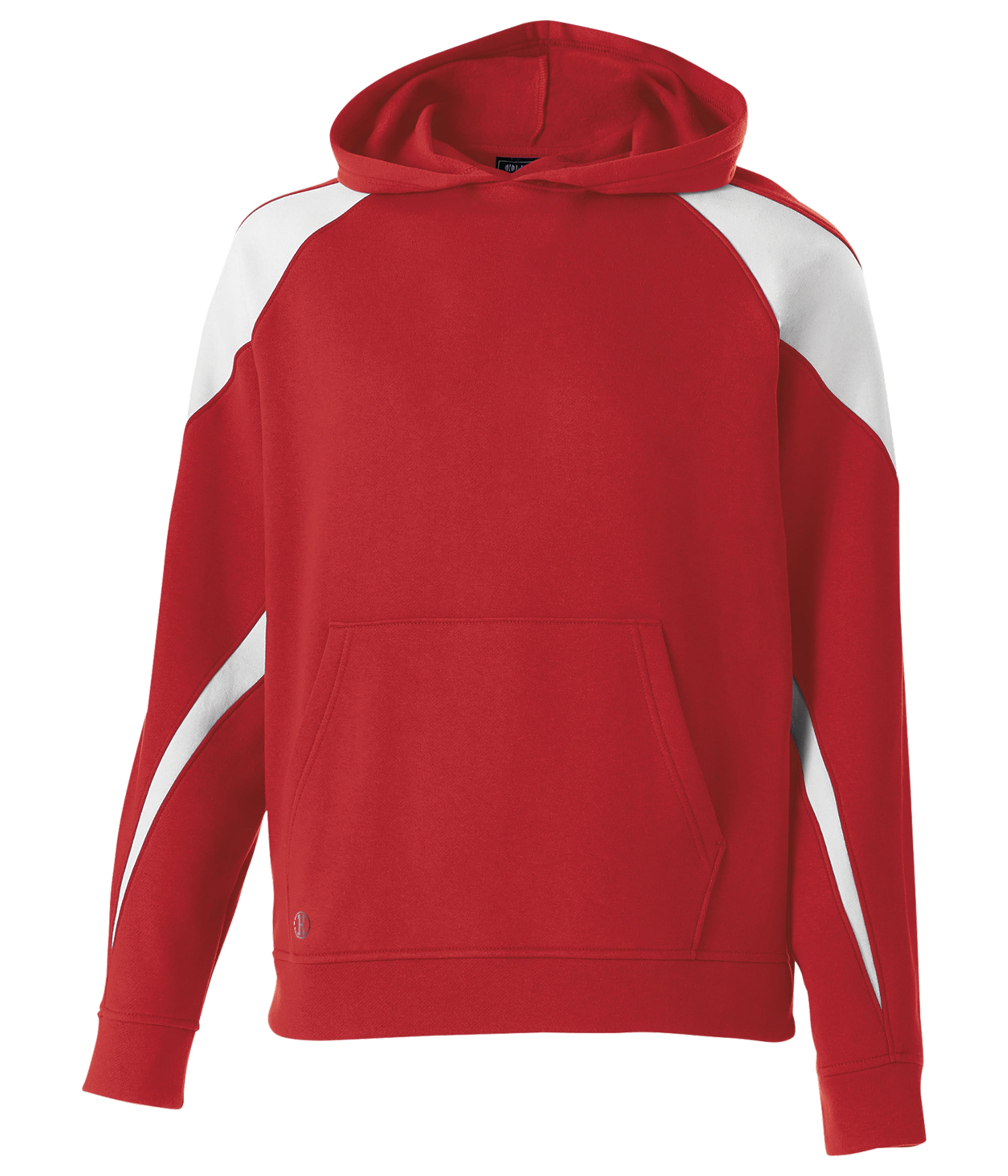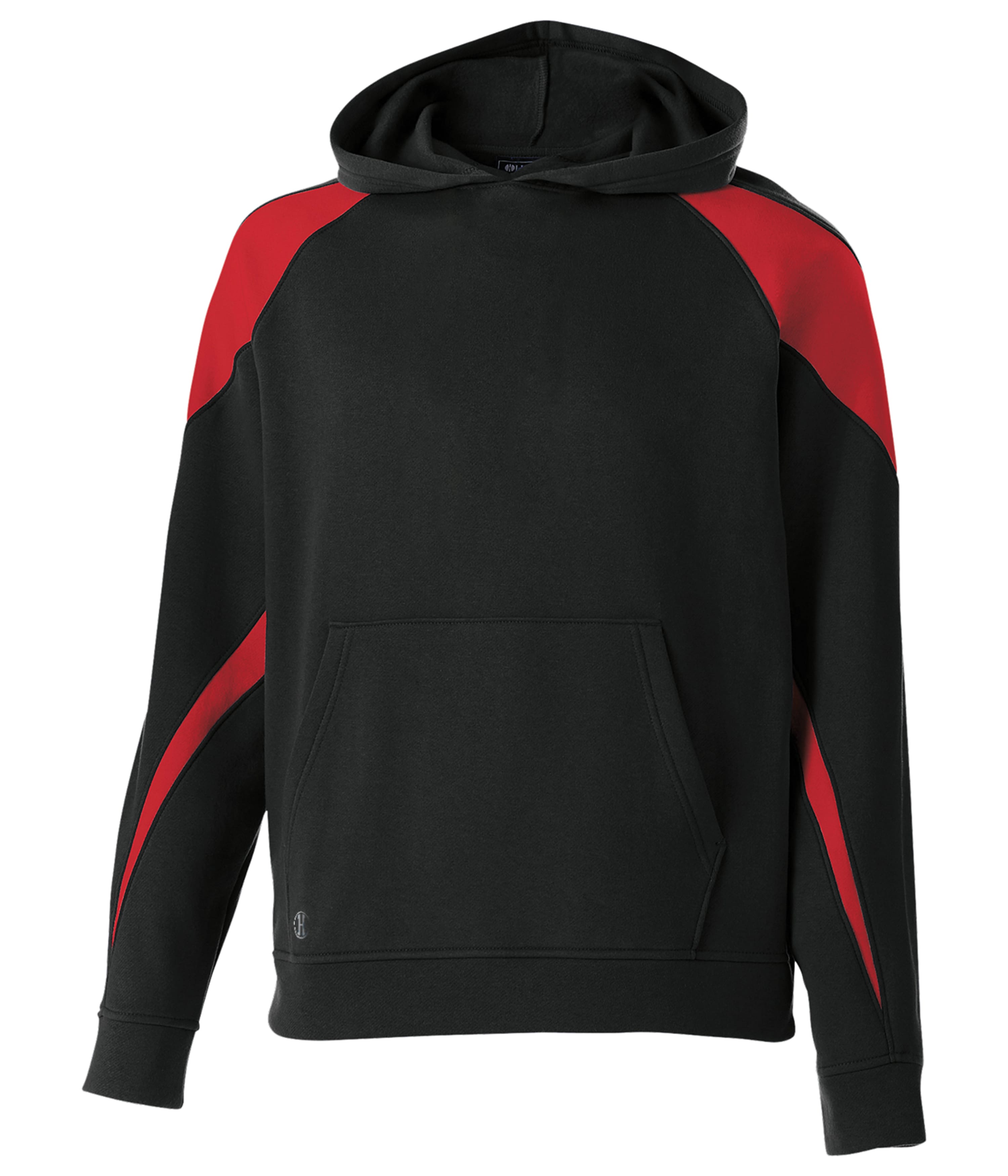 9 ounce 60% cotton/40% polyester athletic fleece * Woven label * Hood with drawcord on Adult sizes only * Contrast color inserts * Raglan sleeves * Front pouch pocket * Rib-knit cuffs and bottom band