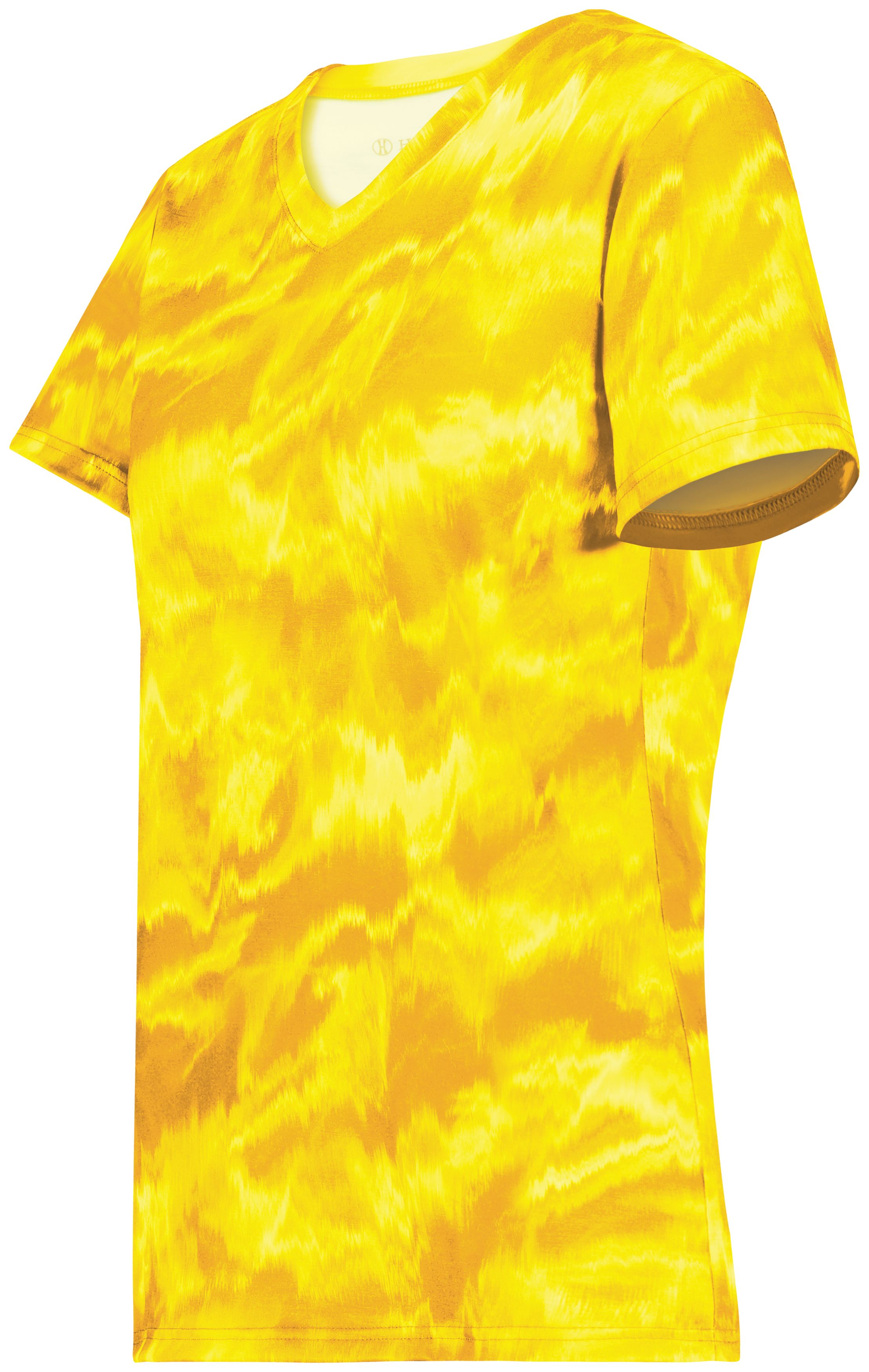 5.6 ounce 95% polyester/5% spandex wicking knit * Fully sublimated design * Wicks moisture * Odor resistant * Ladies' Fit * Tag-free label * V-neck collar * Garment protects against the sun with 50+ UPF * Set-in sleeves * Because of the manufacturing process of the fabric and garment, each tee will be unique